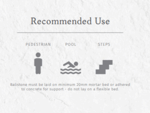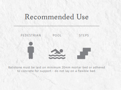 Suitable: Patios, Courtyards, Steppers, Pool Surrounds, Entertaining Areas and Pathways