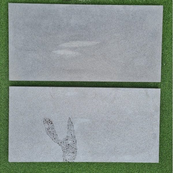 Natural bluestone, diamond sawn rectangular slab. 1200mm x 600mm x 30mm thick. An impressive stone slab providing immediate feature surfaces. Bluestone is a stunning and durable natural stone when finished for slabs like this. Add as a large stepping stone, a feature stone surface or a paved area / path.