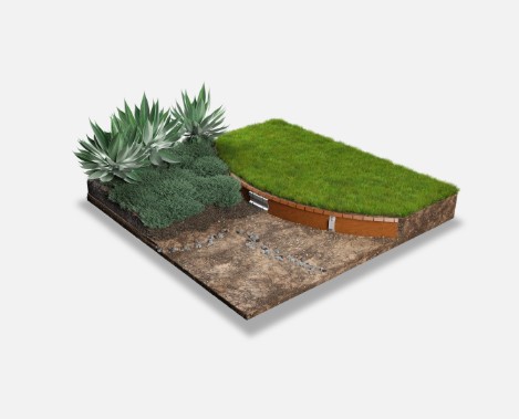 Straightcurve Flex ClickConnect garden edging – a high-quality pro-grade weathering steel product made for smooth flowing curves.