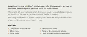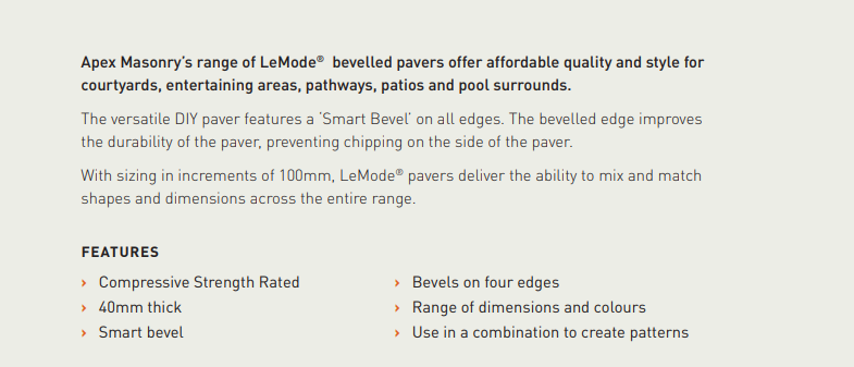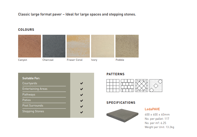 Suitable: Patios, Courtyards, Steppers, Pool Surrounds, Entertaining Areas, Pathways