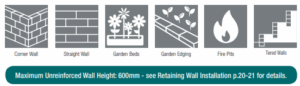 Suitable: Low retaining wall, Straight wall, Garden bed, Garden edging, splitface