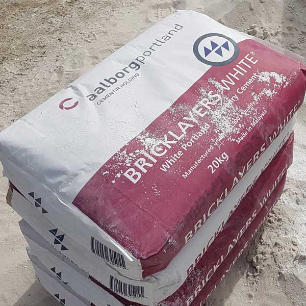 Aalborg Bricklayers White Cement is a pure white cement designed especially for Bricklayers. Why you should be using Aalborg Bricklayers Whit Cement. It creates a distinctive, crisp, white mortar to contrast light, dark and feature face brickwork. Being a pure white‚ cement, not ‚ off-white‚ you can achieve a whiter mortar colour while using off-white sand The additives in Aalborg Bricklayers White Cement create a creamier mortar, improving workability and extending mortar board life therefore reducing mortar waste. This means you will need less plasticizer, lime and fireclay added in your mix. As it is a pure white colour, it’s a perfect base cement for adding coloured oxides. Meets M4 rating for Coastal environments. For use in bricklaying mortar, rendering, bagging and external grouting.